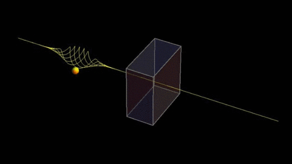 但是按照量子力学的思维方式,在足够短的时间内,你是有一定几率可以瞬间出现在山的另一边的,而不需要真的爬到山顶。就好像在现实世界中,有一堵 10 米高的墙,以我们的常规能力无论如何都无法翻越过去,但只要时间足够短,根据量子力学,你就有一定的几率可以直接穿过这堵墙。